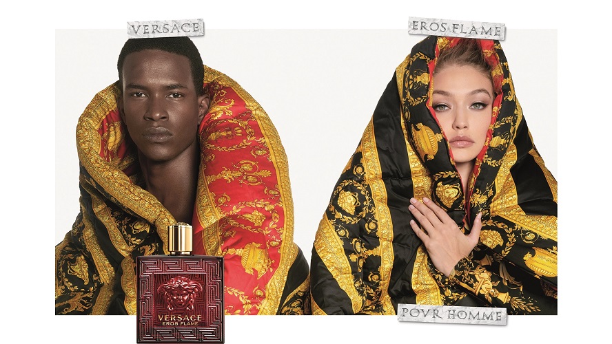 La nouvelle image de Versace Eros Flame propose l’amour soudain entre un homme et une femme, jouée par la belle Gigi Hadid, tous deux dans un cadre de Versace.