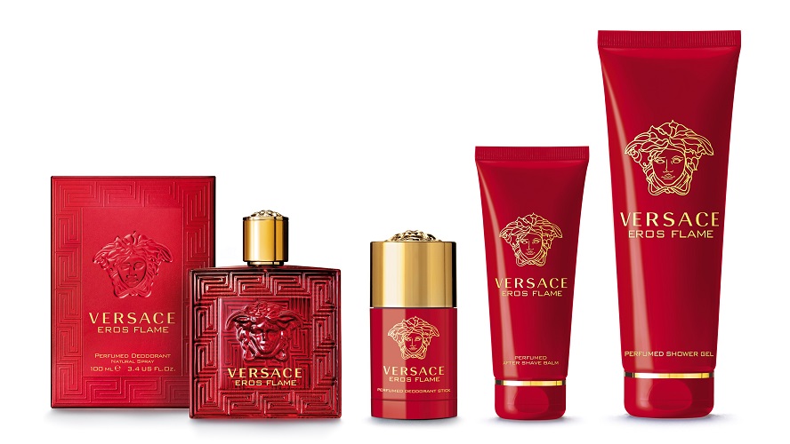 Versace Eros Flame est rouge feu, intense et masculin, pour rappeler sans équivoque la passion de l’amour.